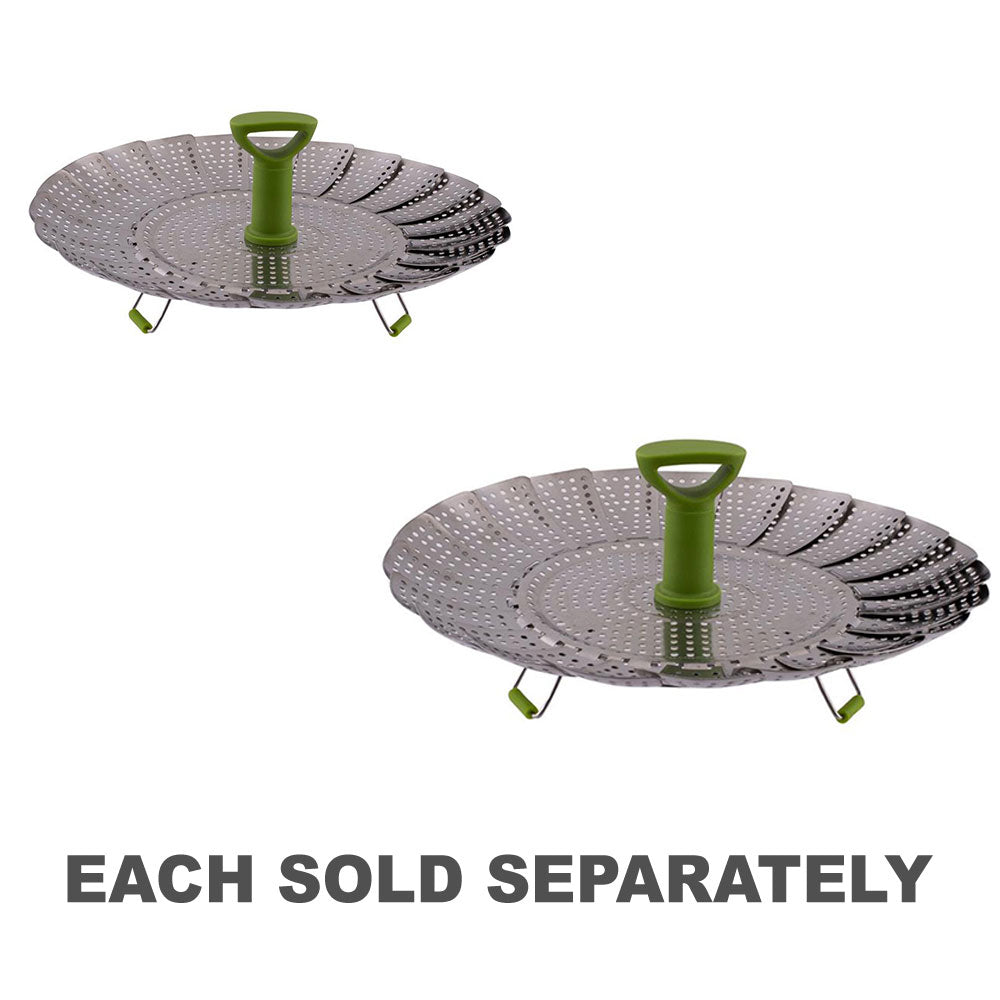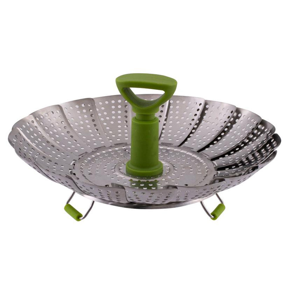 urn your saucepan into a steamer with the Avanti Deluxe Steamer Basket. Ideal for steaming, vegetables, fish and eggs, it is designed with self-adjusting sides to fit a variety of saucepans and pots. Constructed from durable stainless steel it features silicone covered, non-scratch folding feet to protect your saucepans and work surface. An extendable handle allows for effortless insertion into deeper pots and easier lifting with a fork when the steaming is complete. Dishwasher safe for easy cleaning and all components collapse for convenient, compact storage.