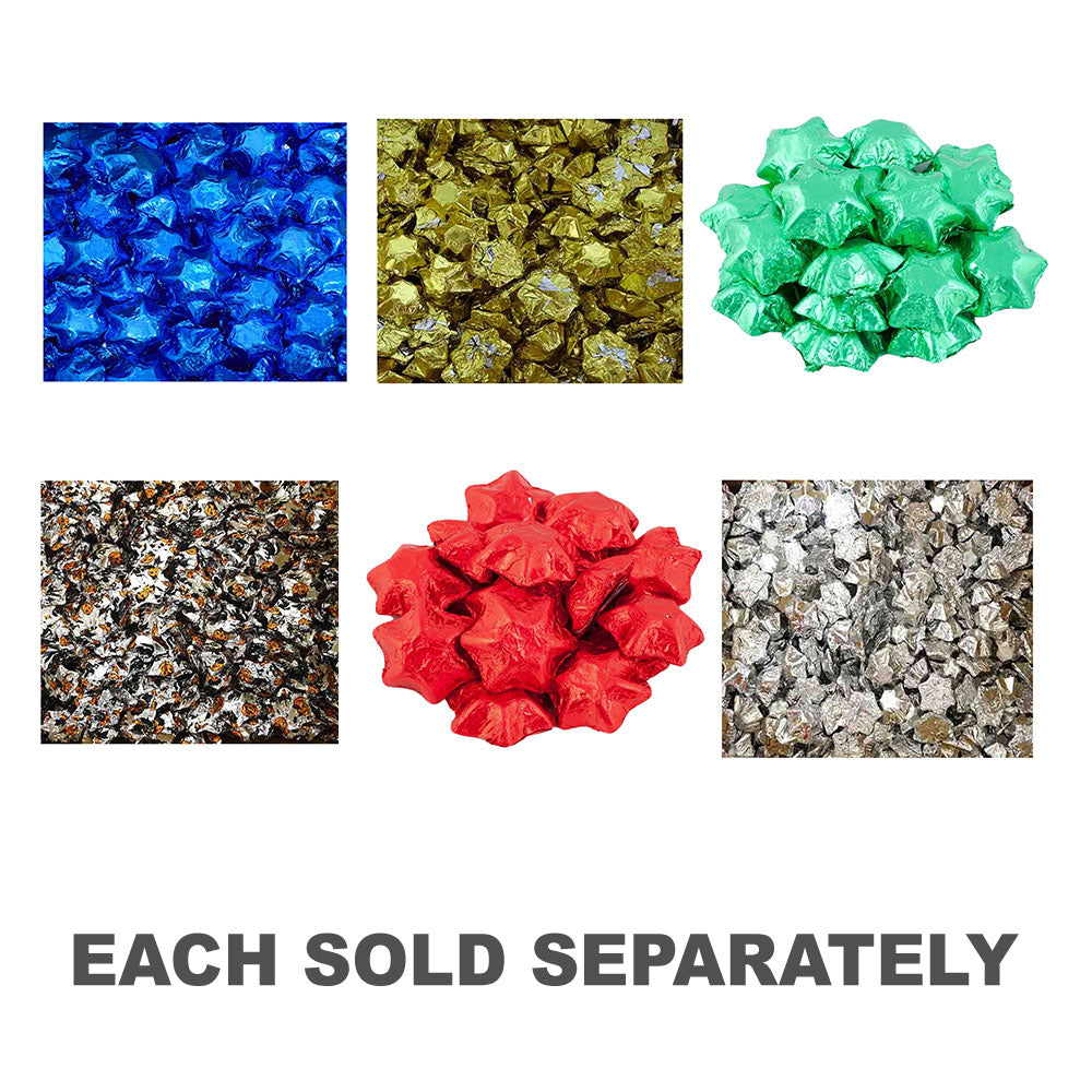 • 5kg package of Belgian milk chocolate stars in a rich dark blue color