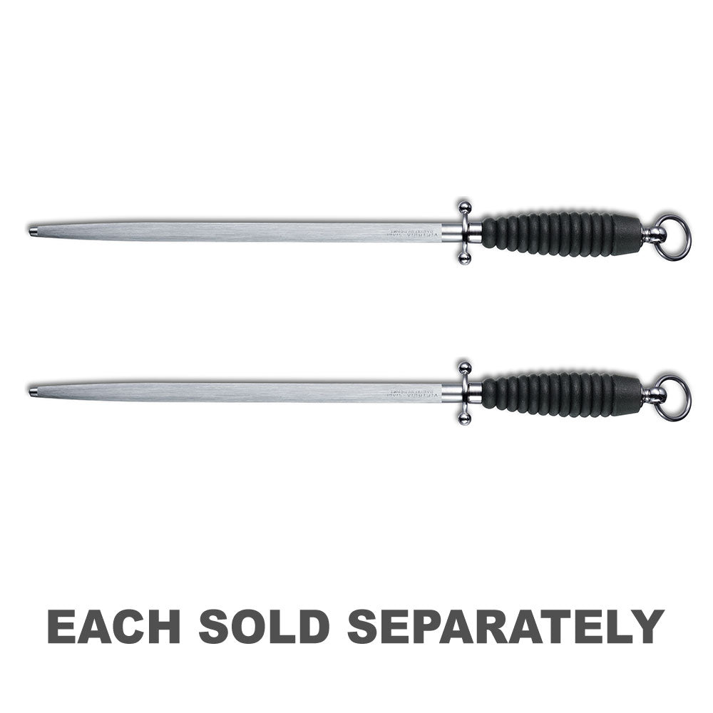 Victorinox butcher Sharpener Steel is a fine quality steel with ripple handle and hanging ring. The handle is made of strong plastic material with super fine soft-grip. Round shape gives more surface area, making sharpening quicker. The middle fine cut is used for a minor abrasion on from the blade and to obtain a very fine edge. It is an extremely hard-wearing coating, good grip and very good sharpening properties. Sharpener has ingenious design for safe and easy to use. Perfect steel for butchers, chefs or for home use.