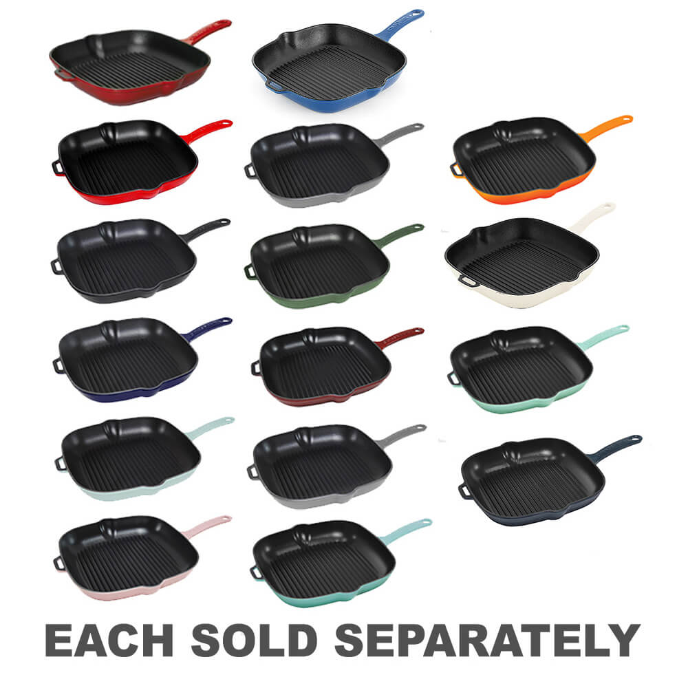 The square grills are great for meat, fish, seafood, fruits, vegetables and brochettes-giving you professional seared marks and flavour every time. It is also ideal for searing meat before putting it in the oven to complete the cooking process. The grooves allow cooking with less oil for healthier cooking. This product is made in France. It provides all the benefits of cooking with cast iron including compatibility with the use of induction and other cooktops.