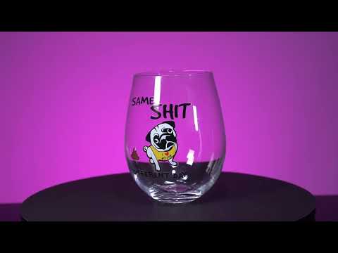 - Hand-blown stemless glass featuring bold, pop art-style femme icons