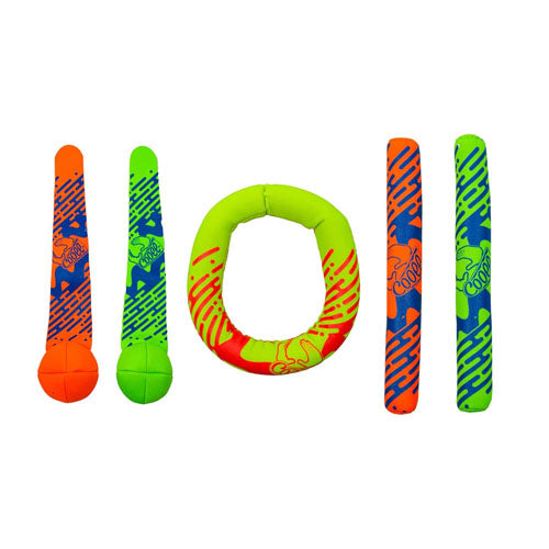 The Dive fun pack is filled with the perfect pool toys to elevate your water play. Include Dive Rings, Dive Stixx, and Dive Streamers ? the perfect combo for fun and learning in the water!