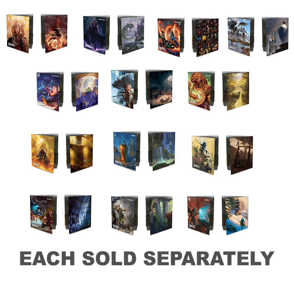 Organize and store your notes, character sheets, and spell cards in Ultra PRO's Character Folios for Dungeons & Dragons! Each folio features a vibrant full-art cover and internal pockets, and includes 10 single-pocket pages for character sheets and notes, and two 9-pocket pages for standard size spell cards. Character Folios now include a sticker sheet to help keep your adventures organized! Classes available: Artificer, Barbarian, Bard, Cleric, Druid, Fighter, Monk, Paladin, Ranger, Rogue, Sorcerer, Warlock, and Wizard.