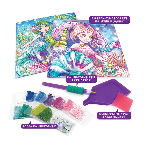 ¥ÊKit includes 2 ready-to-decorate printed boards, 4500+ rhinestones, rhinestone pen applicator, rhinestone tray and wax square