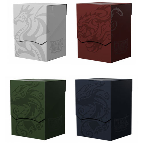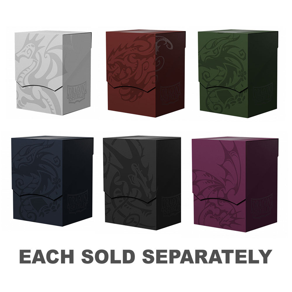 A deep and tinted red, with subtle dragon embossing and black interior. The Deck Shell is an elegant and compact deck box you can trust to keep your cards safe and secure. The lid sits securely while closed and can be set underneath the Deck Shell for a minimal footprint. The deep cutout provides easy access to your cards. Each Deck Shell comes with a divider and has a writing field for personalization and organization.