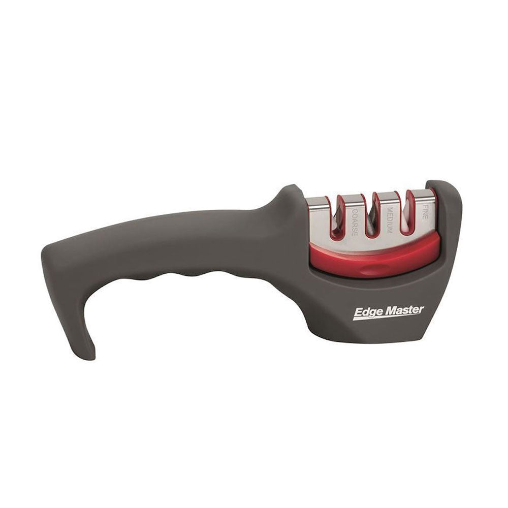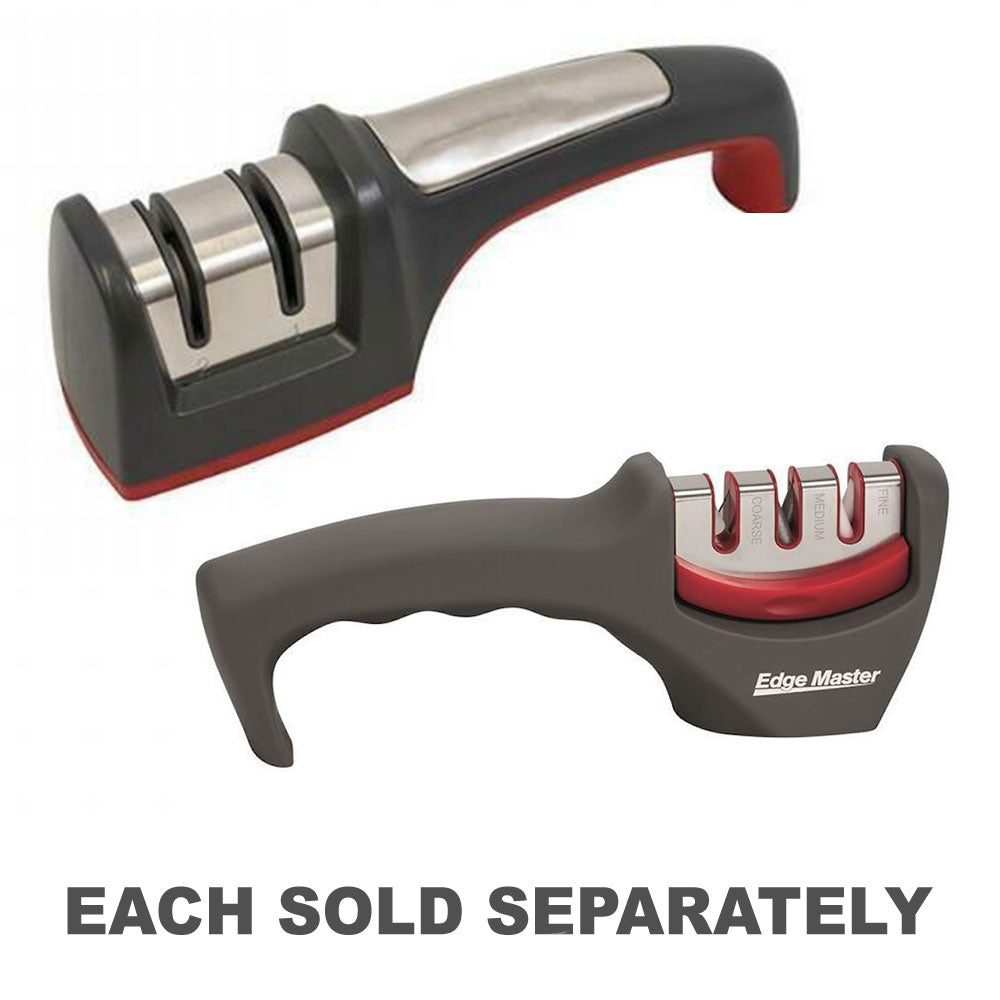 Edge Master 2 Stage Knife Sharpener features an ergonomic handle and non slip rubber base for a safe and secure grip. If you find your knives are especially dull, use the coarse stage which features a diamond wheel, that will just removed that edge off. The fine stage features a ceramic wheel that will polish and hone the edge back to a razor sharp finish.