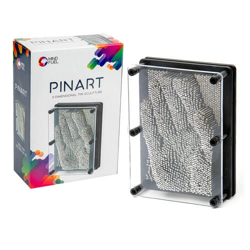 Lift the device to your face - or another appropriate part of your anatomy and gently press down on the thousands of metal pins to reveal a perfect 3D impression behind a Perspex panel.