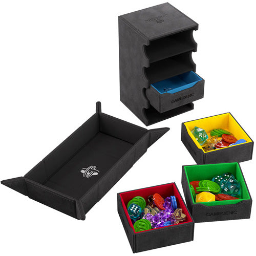 • Contains 4 separate color-coded drawers, perfect for tokens, dice, and many other items