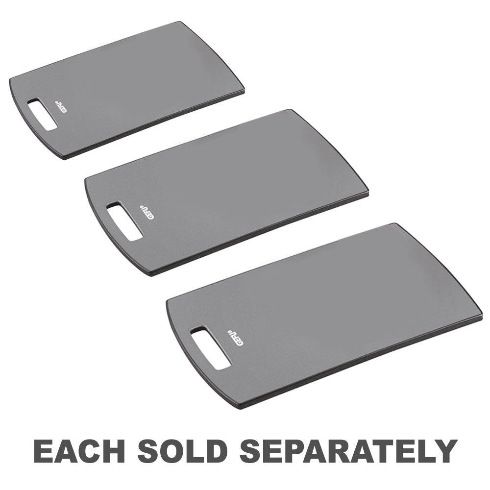 • Thanks to the non-slip silicone feet, the cutting board rests firmly on the work surface. The surface, which is suitable for blades, has an antimicrobial effect that allows you to work hygienically and cleanly.