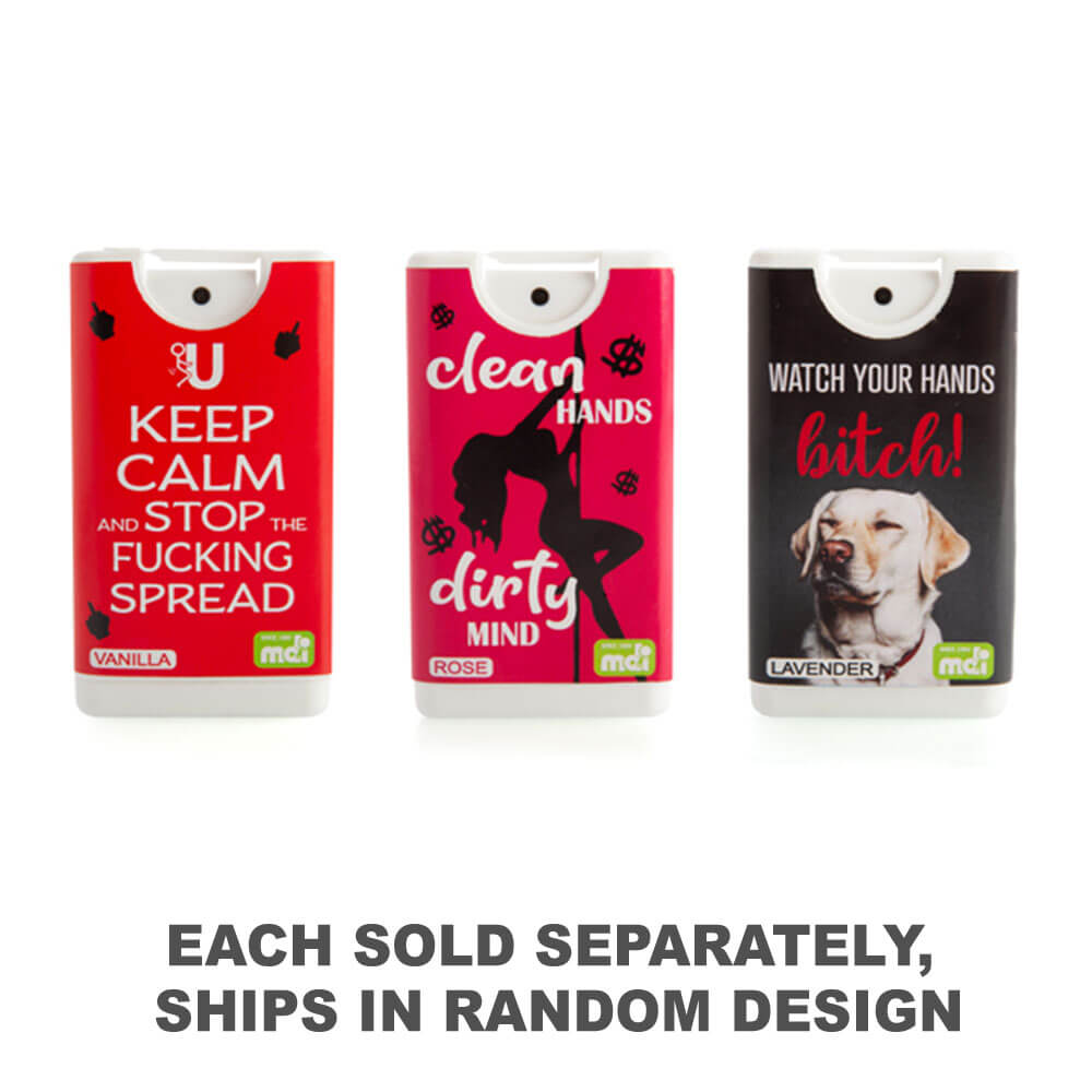 • Compact hand sanitiser with cheeky eye-catching design