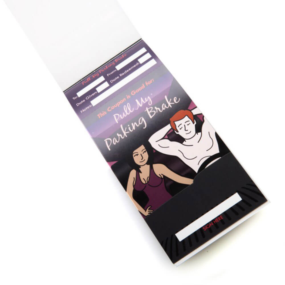 Spark some spontaneity in the bedroom with these 10 Slutty Coupons for him to enjoy. He gets to present coupons to her when he wants to redeem one of the humorous, yet sexually satisfying, coupons. Examples include, "Be My Porn Star" and "Pull My Parking Break". Includes: 10 Hilarious and Coupons that focuses on the man – tonight's all about him!
