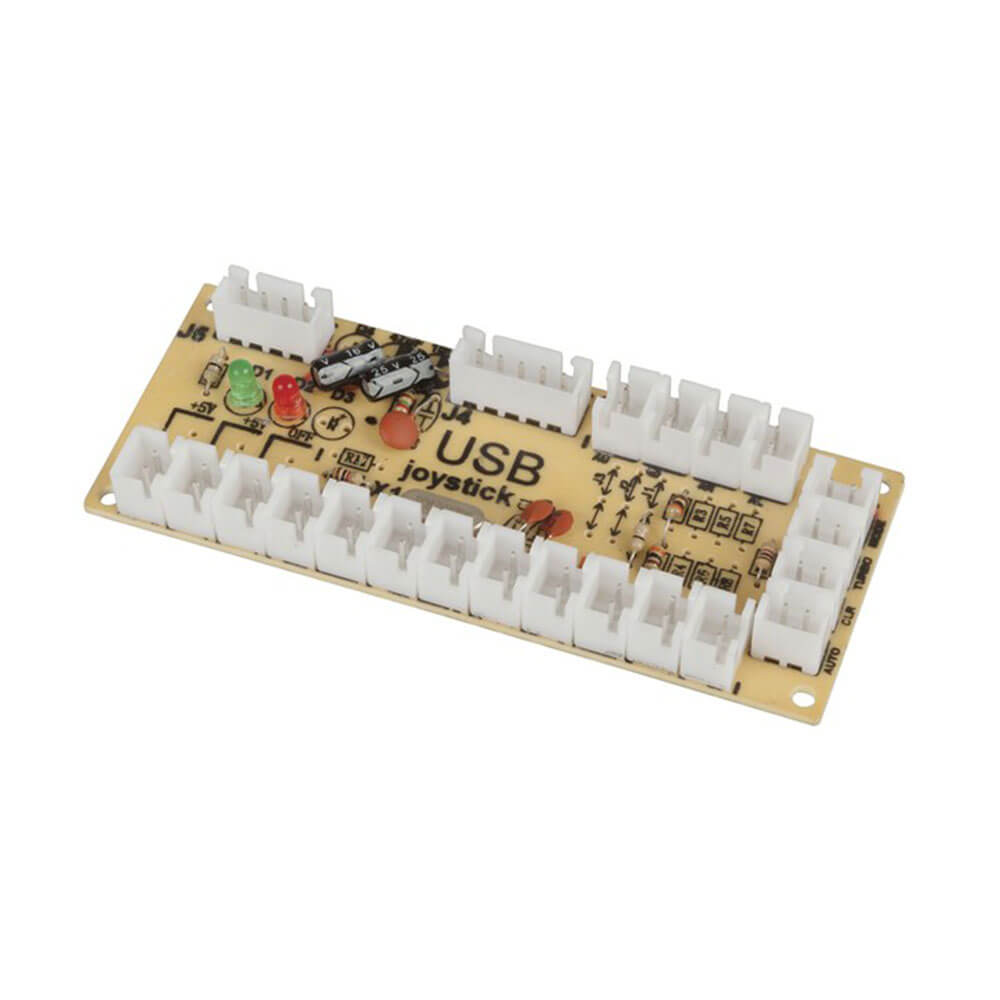 If you're building your own arcade game, whether it's with a PC or Raspberry Pi, you'll need a joystick. This interface board allows you to easily interface joysticks like our SM1052 and arcade pushbuttons like SP0662, SP0664, SP0665, SP0666 and SP0669 into any device that can connect to a USB joystick. It could be used for arcade games, flight simulators or anything that works with a USB joystick.