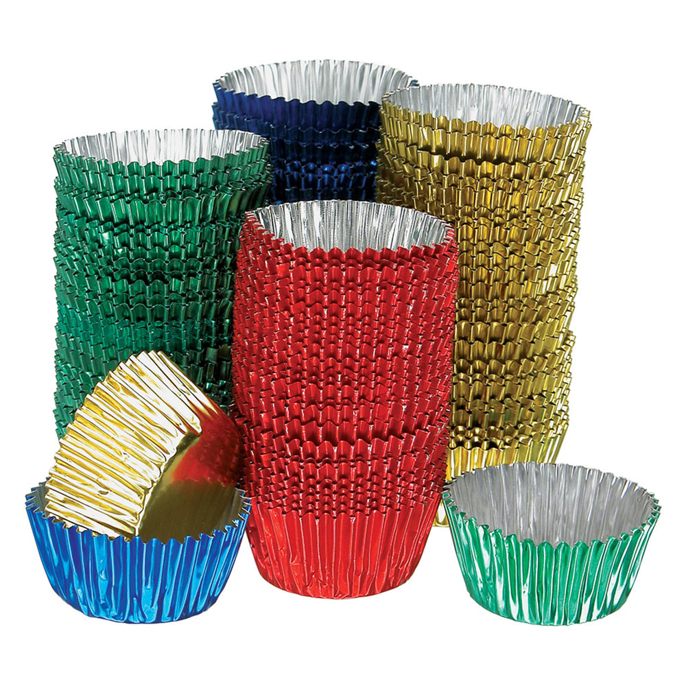 • Pack of 100 assorted metallic mini paper patty pans
