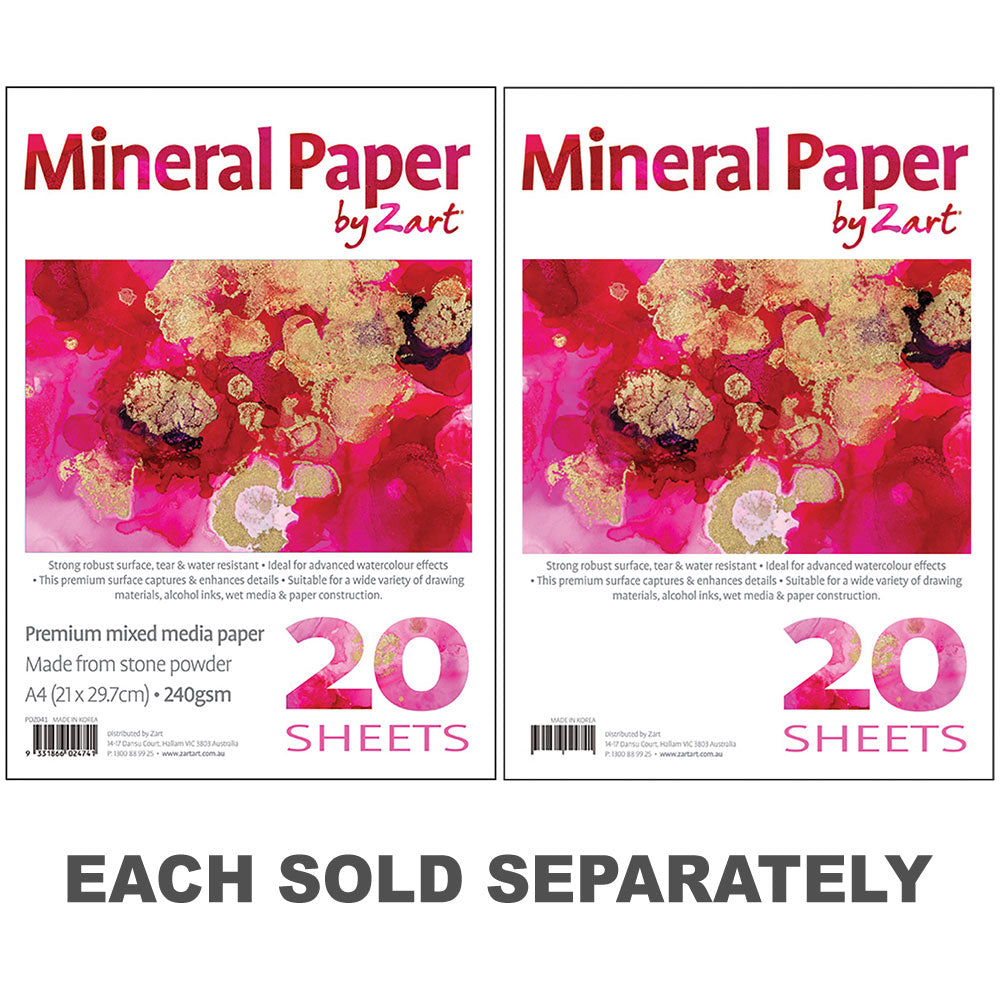 Unlike conventional papers, this premium mineral paper pad does not give off a plastic feel. Instead, it provides the right amount of absorbency for a diverse range of creative techniques. Each pad measures A4 size with a weight of 240gsm, offering ample space for your artistic expressions.