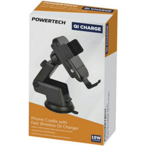 A phone holder for your car that features a fast wireless phone charger. By activating the button on the side, the phone holder will open and close automatically after inserting the phone. Heavy duty construction ensures it is suitable for even the heaviest of phones. Compatible with Qi-enabled smart phones or phones equipped with a Qi adaptor.