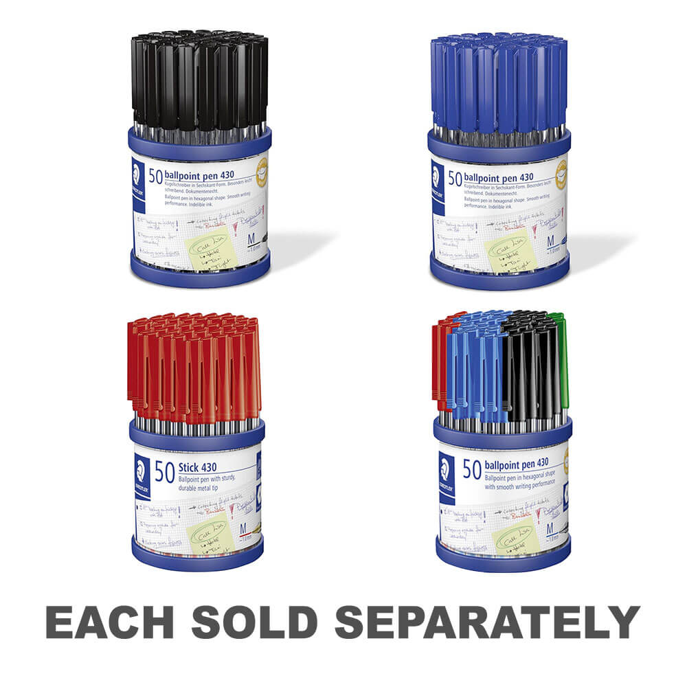 Medium: 1mm ball diameter with 1mm line width. Regulated ink flow to prevent smudging and scratching. Comes with tub support. 50 pens 430 in black.