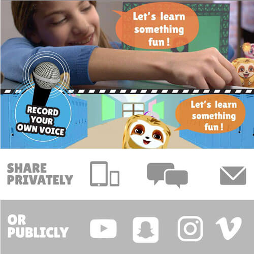 • Includes a miniature green screen, 2 characters, props and base for mobile device