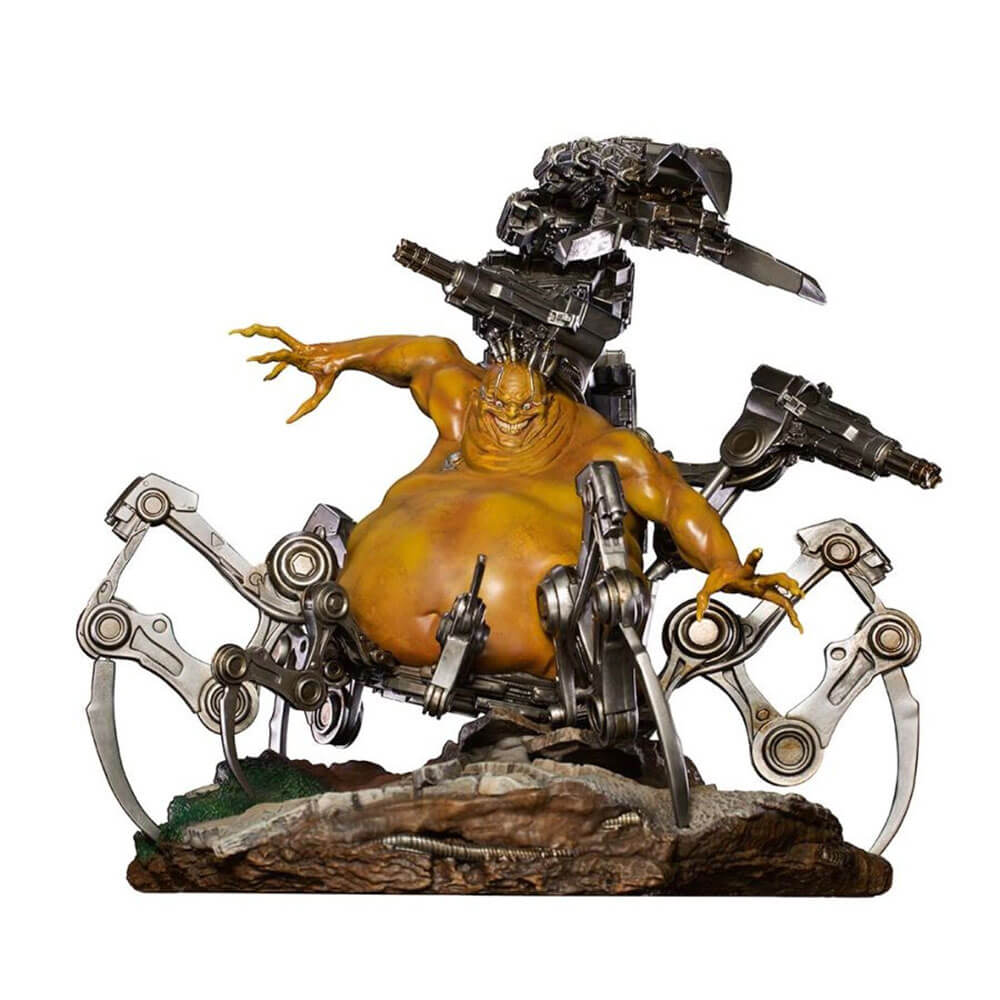 As if he's come straight out of a nightmare, a burly, misshapen, yellow-skinned being moves like an arachnid. Moved by mechanical paws that come out of a motorized platform to transport his obese body, and supported by a metallic tail, in place of his spine, just like a scorpion, as the tip of his tail releases deadly resources, with claws and particle beam weapons. A fearsome interdimensional sorcerer, master of manipulation and machinist of his universe, he advances, atop a base that resembles the gardens of Mansion X, along with other mutant super-villains, in a diorama setting, alongside Magneto and Robots Sentinels versus the X-Men. For fans and collectors, from the dimension that adds his name, Iron Studios proudly presents its statue "Mojo - X-Men - BDS Art Scale 1/10".