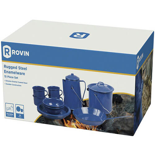 15-teiliges Lagerfeuer-Emailgeschirr aus Stahl