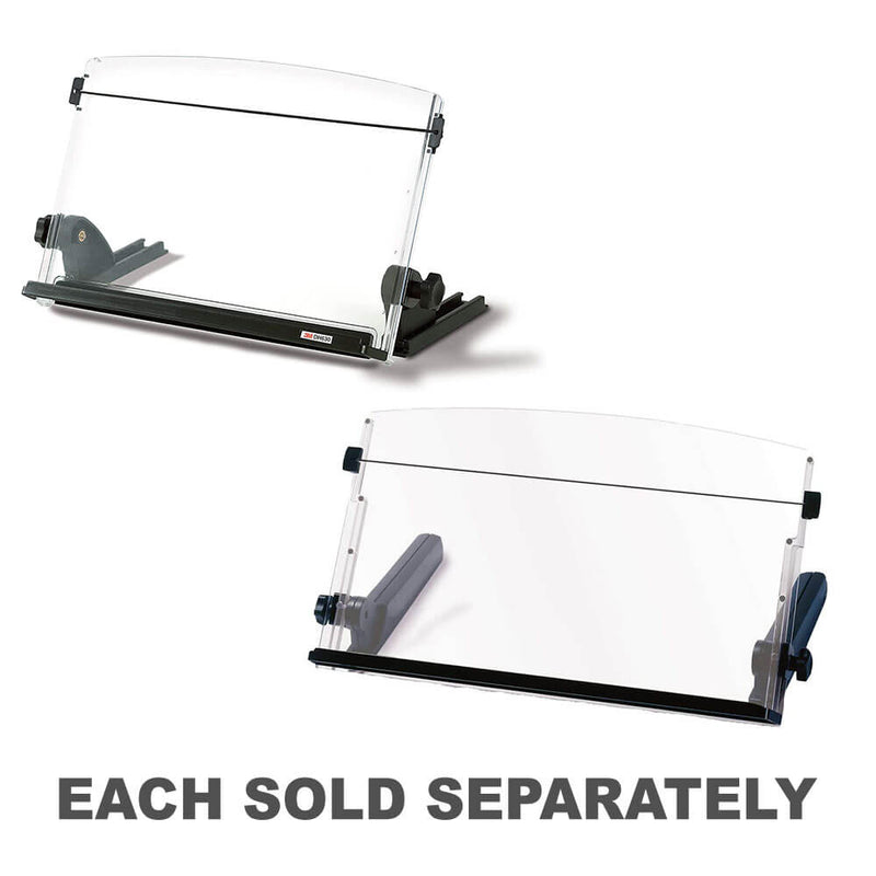 Der verstellbare Inline-Dokumentenhalter von 3M mit elastischer Linienführung platziert Dokumente in einer Linie mit Ihrem Monitor und Ihrer Tastatur und reduziert so die Bewegung von Augen, Nacken und Schultern, minimiert die Belastung und erhöht den Komfort. Die stabile, gewichtete Basis ermöglicht es, die Leiste unter die Schreibtischkante zu senken und so den Platz auf dem Schreibtisch zu vergrößern. Die elastische Linienführung markiert Ihre Platzierung, hält die Seiten offen und lässt sich dehnen, um selbst die dicksten Bücher aufzunehmen. Die 18" breite Rückplatte und die Kapazität von 300 Blatt unterstützen Bücher, Kataloge und Dokumente praktisch jeder Größe. Winkel und Höhe passen sich Ihren Bedürfnissen an. Schwarz/klar. 40 % Pre-Consumer-Recyclinganteil.