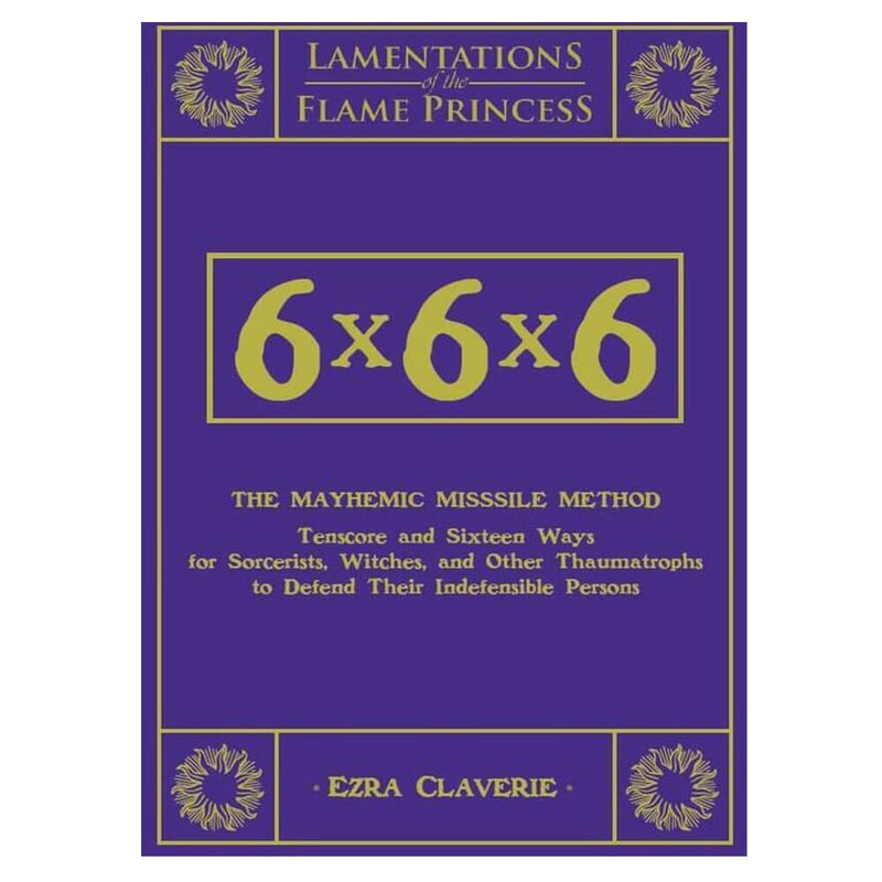 SECHS Dieses Buch verwandelt einen vertrauten, niederstufigen Zauber in etwas, von dem Sie vielleicht nicht wollen, dass Ihre Verbündeten, geschweige denn Ihre Feinde, es wirken. 6x6x6: The Mayhemic Misssile Method (Tenscore and Sixteen Ways for Sorcerists, Witches, and Other Thaumatrophs to Defend Their Indefensible Persons) ist eine magische Ergänzung zur Verwendung mit Lamentations of the Flame Princess und allen anderen traditionellen Schwert-und-Zauber-Tabletop-Rollenspielen Spiele.