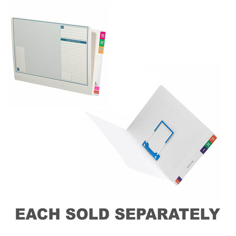 • Bedruckte Felder auf dem Einband, damit Notizen und zugehörige Dateiinformationen direkt auf der Datei notiert werden können