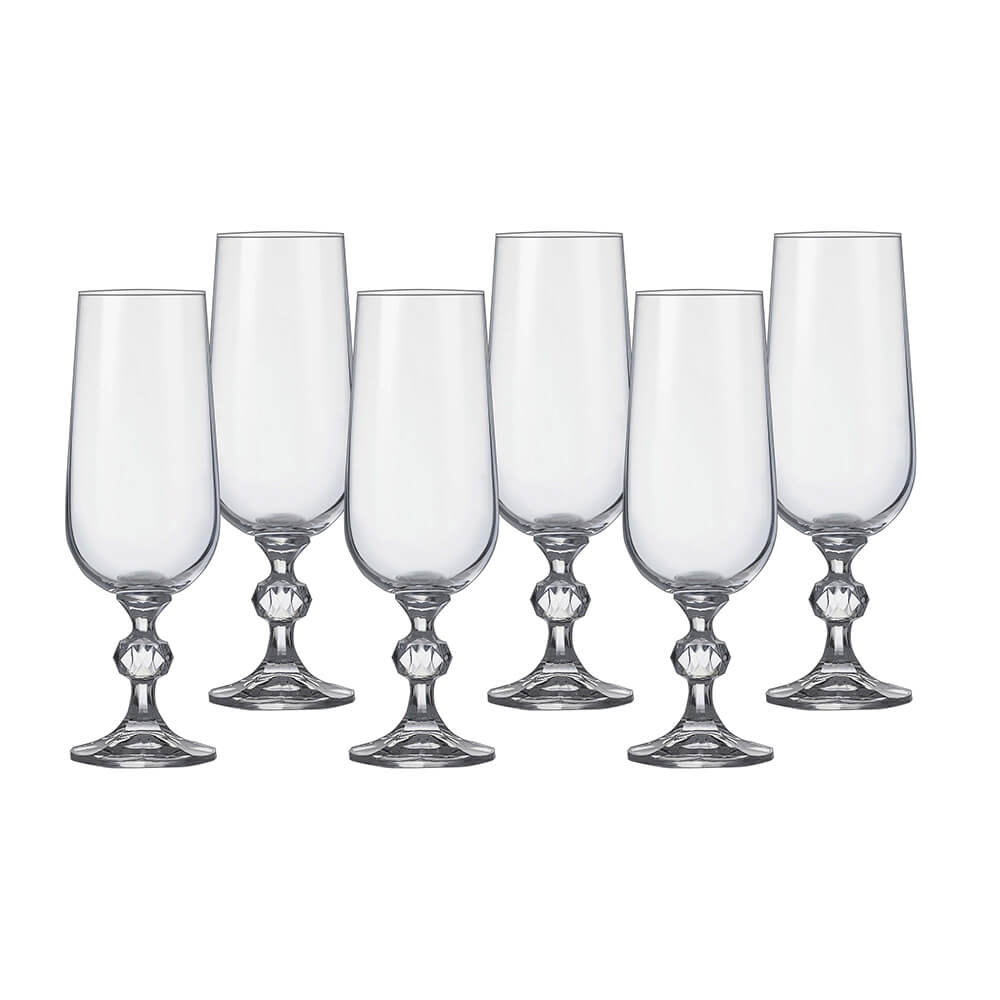• Set mit sechs Champagnergläsern aus hochwertigem bleifreiem Kristall.