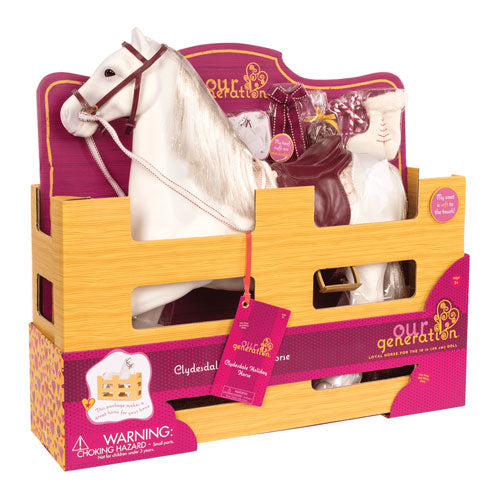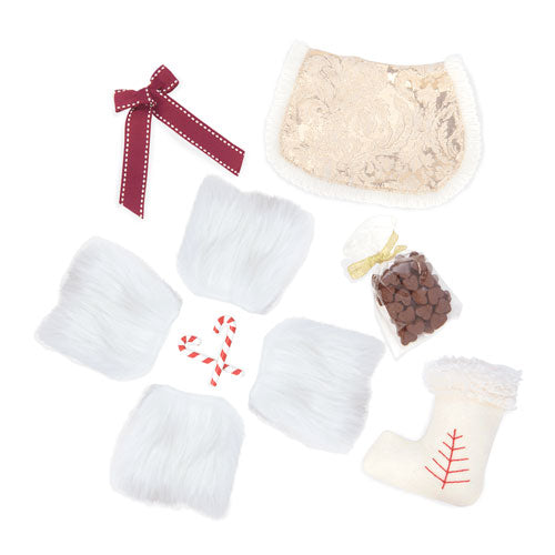 Ein wunderschöner Pferdefreund, der Ihre funkelnden Urlaubsmomente teilen! Dieses schimmernde weiße 50 -cm -Spielzeugpferd ist der perfekte Reitfreund für Ihre Puppen. Lassen Sie Ihre Puppen auf dem Rücken fahren oder mit dem Pferd einen Winterschlitten ziehen! Das Clydesdale Horse hat schöne Nylonhaare, die Spaß machen, zu bürsten und zu stylen. Es wird mit vier flauschigen, faux-Fur-Pferdestiefeln, einem roten Band zum Dekorieren, einer Brokat-Fabric-Satteldecke und vielen entzückenden Urlaubszubehör geliefert, die Sie mit Ihren Puppen teilen können!