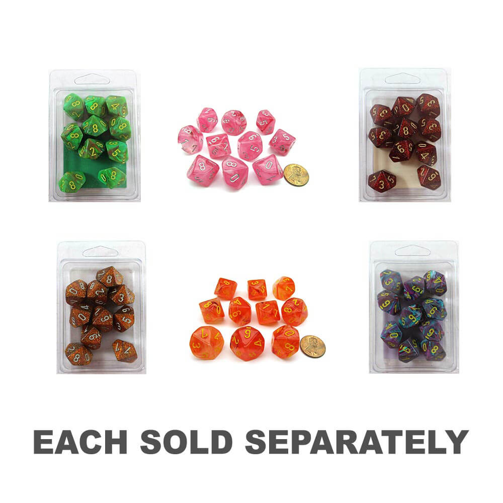 - Packung mit 10 Chessex Ghostly Glow D10 Würfeln – Rosa mit silbernen Zahlen