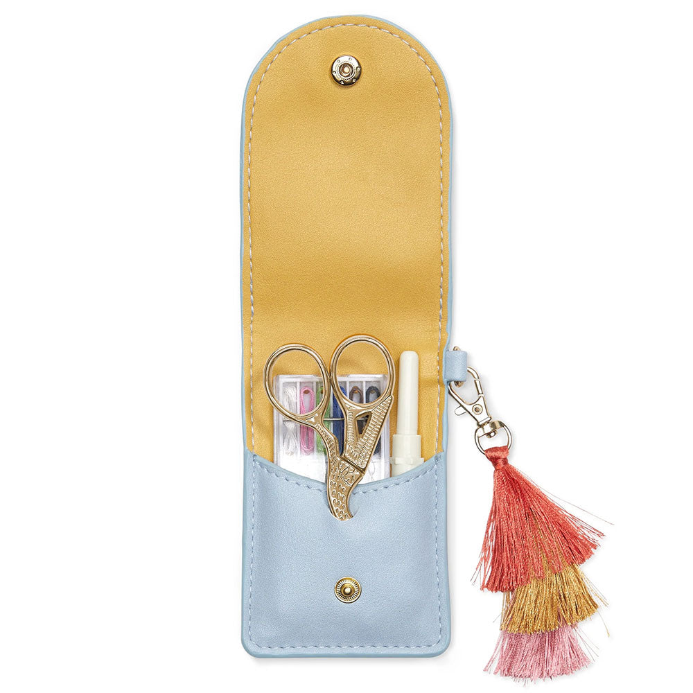 Ein intelligentes und kompaktes Reise-Nähset in einer veganen Ledertasche, perfekt dimensioniert, um es überallhin mitzunehmen. Ein praktisches Geschenk für Vielreisende, als Geschenk für die Weihnachtsgeschenke, zu Geburtstagen oder einfach zum Verstauen auf dem Schreibtisch oder als griffbereites Geschenk zu Hause für den Fall von Garderobenpannen. Wenn Ihnen das Nähmaterial und die Stiche ausgehen, schauen Sie sich dieses schicke und dennoch praktische Nähset an. Es ist die beste Nähe, in der man sein kann, wenn die Dinge auseinanderfallen!