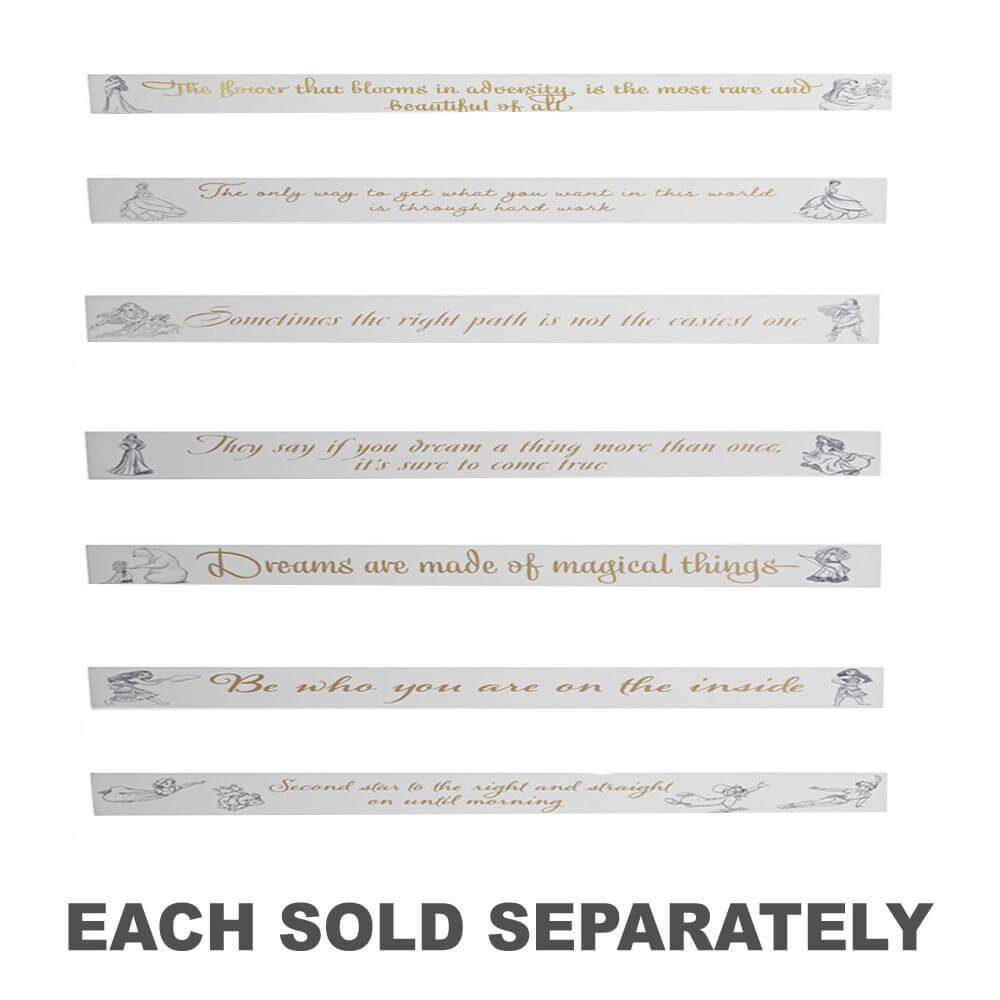 Bringen Sie mit dieser sammelbaren Aurora-Schreibtischtafel ein paar Worte der Disney-Weisheit in jeden Raum. Diese bezaubernde weiße 40-cm-Plakette zeigt Illustrationen von Aurora und ein mit Goldfolie überzogenes Zitat/Gefühl. Die Bildunterschrift lautet: Man sagt, wenn man etwas mehr als einmal träumt, wird es mit Sicherheit wahr.