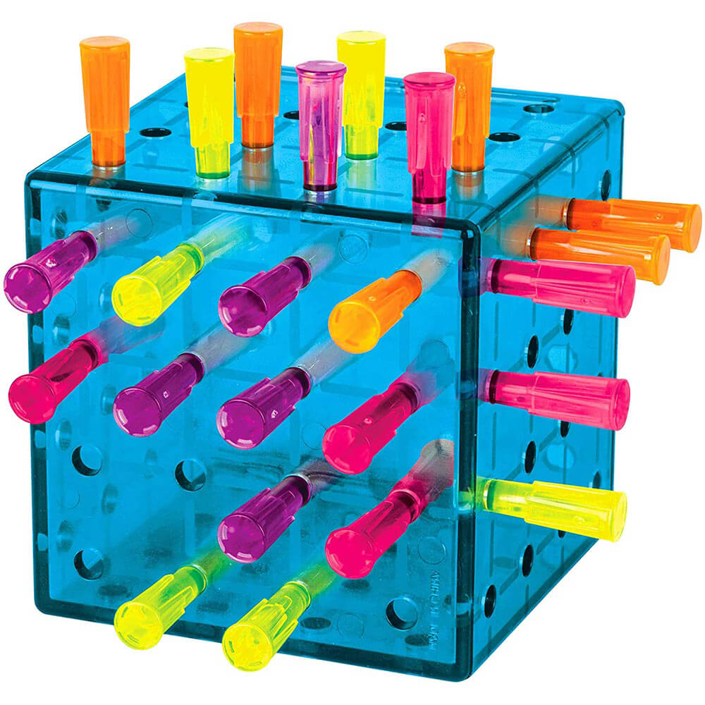 Wir alle leiden gelegentlich unter mentalen Blockaden, aber Duncan hat mit dem neuen Mental Block-Gehirndreher seine Grenzen erreicht. Mit abwechselnden Zügen einfach der erste Spieler sein, der 4 Stifte in einer Reihe verbindet, und Sie gewinnen! Spaß für 2 bis 4 Spieler, leicht zu erlernen, aber eine Herausforderung zu gewinnen! Über Mauern und um Ecken; Verwenden Sie alle 6 Seiten. Mehr Spaß als zweidimensionale Spiele, Ideal für Kinder jeden Alters, Mehrere Spielvarianten