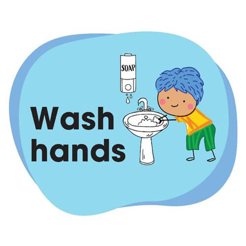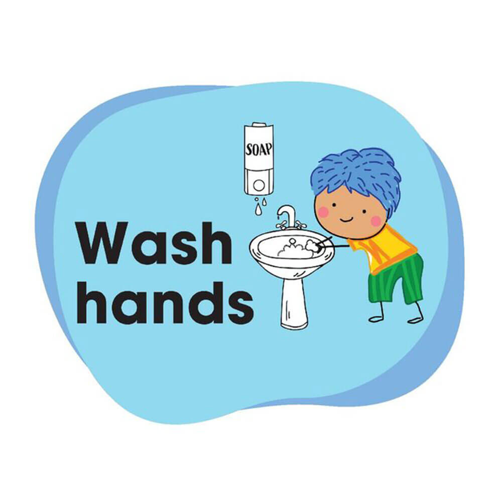 • Das Bodenschild soll Schüler und Gäste daran erinnern, sich die Hände zu waschen.