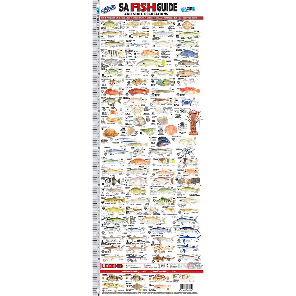 Diese Lineale sind wasserfest, reißfest und bruchsicher und zeigen jeden lokalen Fisch an, für den es Vorschriften gibt. Und natürlich alle der beliebtesten Fischarten.