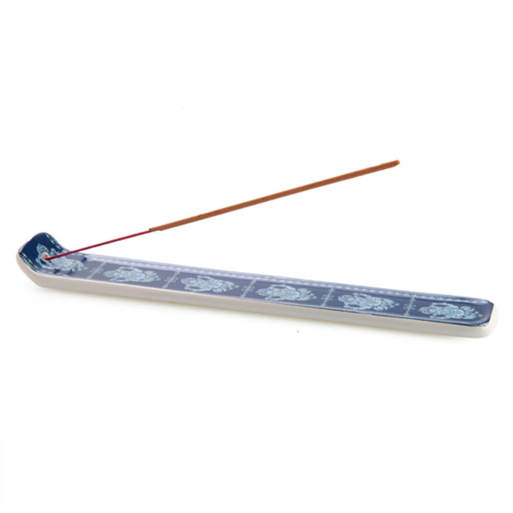Weihrauchbrenner in Weiß und Blau mit der hinduistischen Gottheit Ganesha. Hergestellt aus hochwertiger Keramik