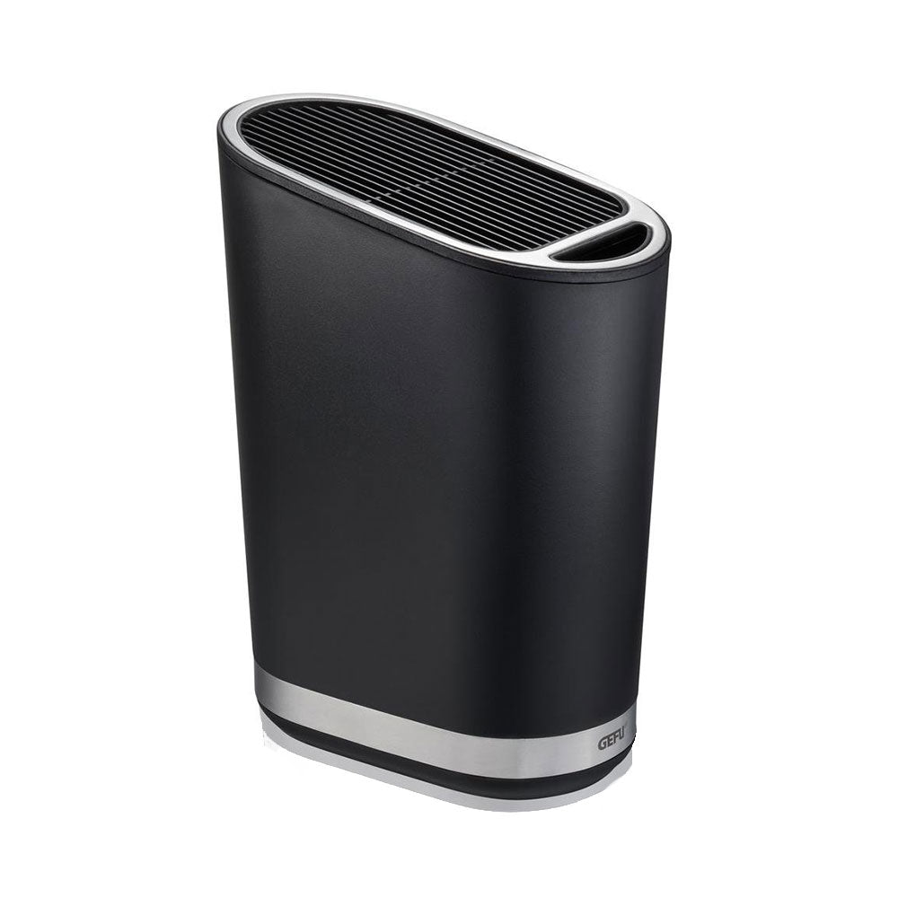 Die neue edle Art, Messer griffbereit zu halten. Der schwere Messerblock in edlem Schwarz mit glänzenden Edelstahlkanten bietet 28 sichere Schlitze für Messer unterschiedlicher Größe sowie einen größeren Frontschlitz zum Wetzen von Stahl oder Küchenscheren.