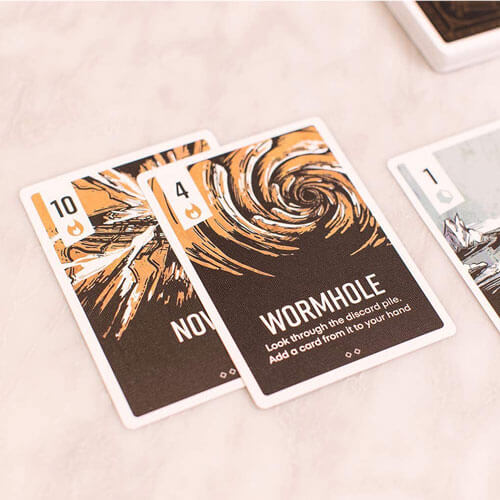 Während Ihres Zuges entscheiden Sie, entweder eine Karte zu ziehen, eine Brennstoffzelle in Ihrem Spielbereich zu installieren, eine Brennstoffzelle auf den Ablagestapel zu brennen oder die Brennstoffzelle eines Gegners zu entschärfen. Die Brennstoffzellenladung auf Karten reicht von 1 bis 10 und verschiedene Fähigkeiten auf Brennstoffzellen sorgen für wechselnde Strategien und mehrere Spiellinien.