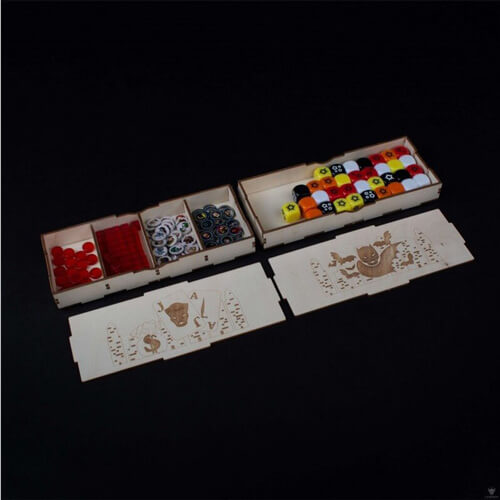 Dieser Organizer sortiert nur alle Kartonplättchen, Karten und Kleinteile, nicht die Miniaturen selbst.