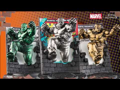 Hervorragend aus Zinn modelliert, schickt der Hulk des Illustrators Alan Quah und des Bildhauers Mufizal Mokhtar eine Wand aus Verbundwerkstoff Harzblöcke fliegen gegen eine Reproduktion des Originalcovers.
