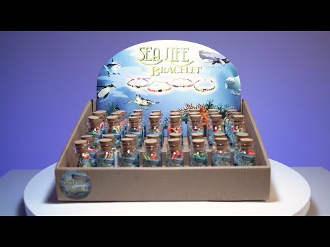 - Aufbewahrt in einer kleinen Glasflasche mit Korkverschluss und Sea Life-Etikett.