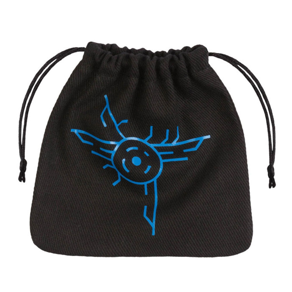 Die Vorderseite der Würfeltasche ist mit einem Muster bedruckt, das sich auf Weltraumforschungen bezieht. Wählen Sie aus zwei Drucken – blau oder gelb. Diese Würfeltasche ist eine hervorragende Ergänzung zu unserem Galactic Dice Set.