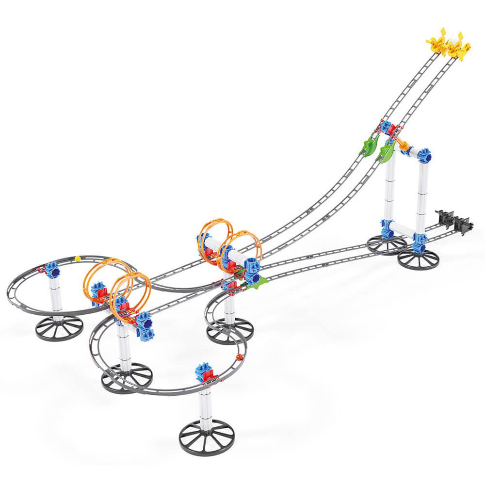 - Fordern Sie Freunde und Familie zu rasanten Murmelbahn-Rennen heraus – Nebeneinander liegende Strecken und gleichzeitiger Start verleihen dieser Murmelbahn ein actiongeladenes Wettkampfniveau