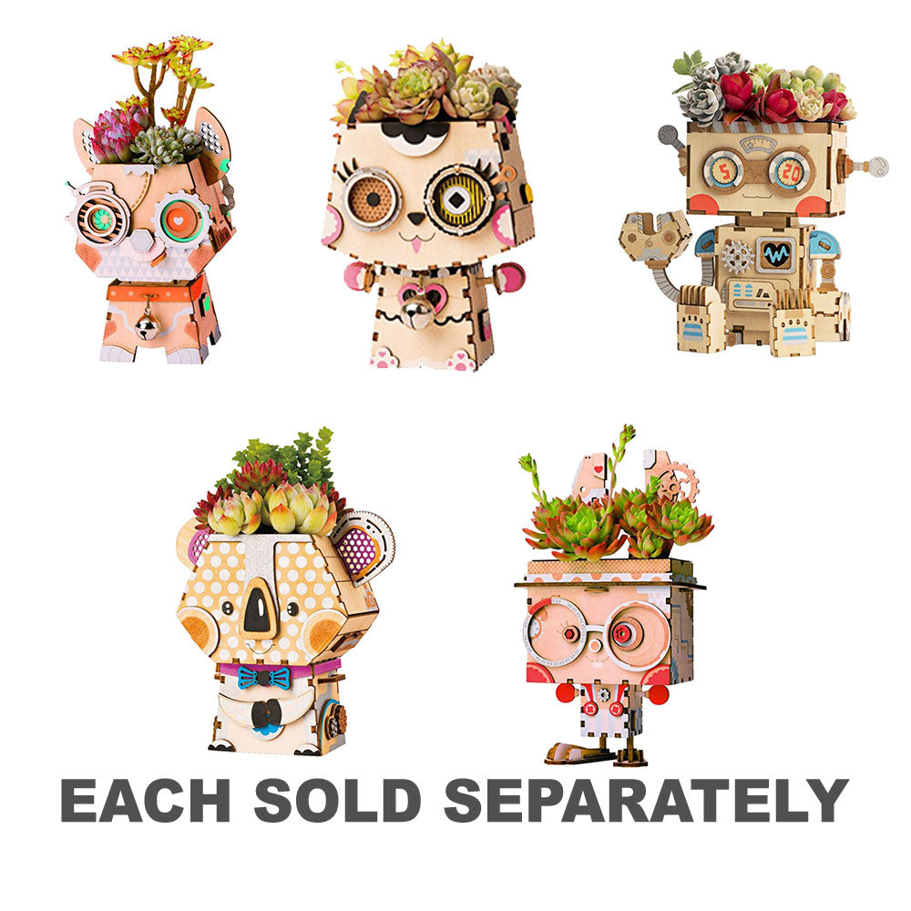 Dieses süße kleine Tier wird direkt in Ihr Herz und Ihr Zuhause hüpfen. Was für eine wunderbare Art, die Natur nach innen zu holen! Ihr Robotime Blumentopf Bunny ist ein niedlicher, pflegeleichter DIY-Übertopf, den Sie bauen und mit Ihren Lieblingsblumen, Kräutern oder Kakteen füllen können. Nehmen Sie die vorlackierten, lasergeschnittenen Teile heraus und passen Sie sie mithilfe des einfachen Schlitz- und Laschendesigns genau zusammen. Alles was Sie brauchen ist im Lieferumfang enthalten! Ihr entzückender Übertopf wird komplett mit einem abnehmbaren Kunststofftopf und einer Abtropfschale geliefert, damit Sie sofort ein grüner Daumen werden. Es ist ein wunderbares Geschenk oder Projekt für die Schulferien. Platzieren Sie es an einem gut beleuchteten Ort und beobachten Sie, wie Ihre Pflanzenbabys gedeihen (Pflanzen nicht im Lieferumfang enthalten)!