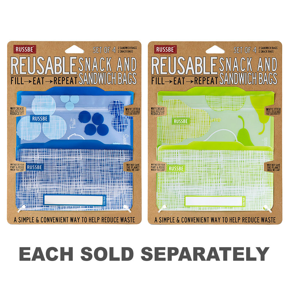 Dieses Set aus 4 Snack- und Sandwichbeuteln von Russbe ist langlebig und wiederverwendbar und eine umweltfreundliche und trendige Möglichkeit, Lebensmittel frisch zu halten. Mit verstärkten Nähten und einem Verschlussverschluss, um Lebensmittel frisch zu halten, sorgt das Stehdesign mit Seitenfalten für ein sauberes Snack-/Mahlerlebnis. Da es frei von BPA, PVC, Latex und Phthalaten ist, können Sie sicher sein, dass Sie eine gesunde Wahl für sich und Ihre Familie unterwegs treffen – ideal zum Aufbewahren von Essensresten, zum Marinieren von Lebensmitteln oder zum Einpacken von Mittagessen für die Arbeit oder die Schule.