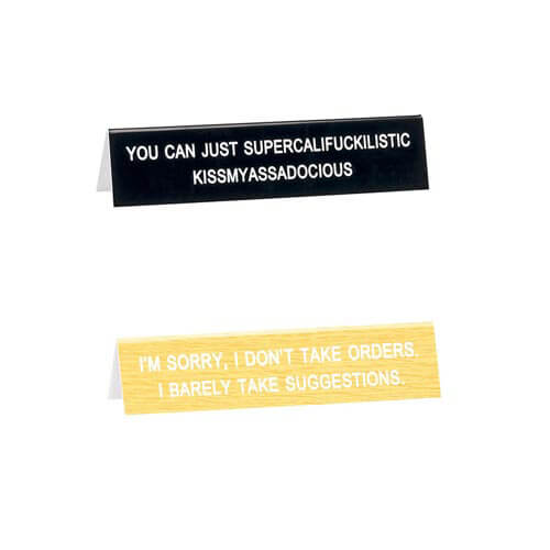 Brechen Sie die Monotonie der Arbeit auf und bringen Sie ein paar LOLs ins Büro mit diesem blauen Schreibtischschild von SAY WHAT?. Die Bildunterschrift lautet: „Wenn ein Mann in den Ruhestand geht, wird er zum Vollzeitjob seiner Frau.“ Das Produkt misst 14,5 cm x 3,5 cm.