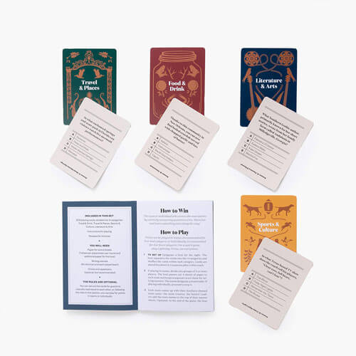 Betrachten Sie das preisgekrönte Magazin Garden & Gun als einen Freund, der so gut wie alles über den modernen Süden weiß. Machen Sie mit bei der Party und beweisen Sie Ihre Liebe zum Leben und zur Kultur der Südstaaten mit diesem Trivia-Spiel, das von G&G-Redakteuren geschrieben wurde. Das Set enthält 200 Trivia-Fragekarten zu den Themen: Reisen & Orte, Essen & Trinken, Sport & Kultur sowie Literatur & Kunst.