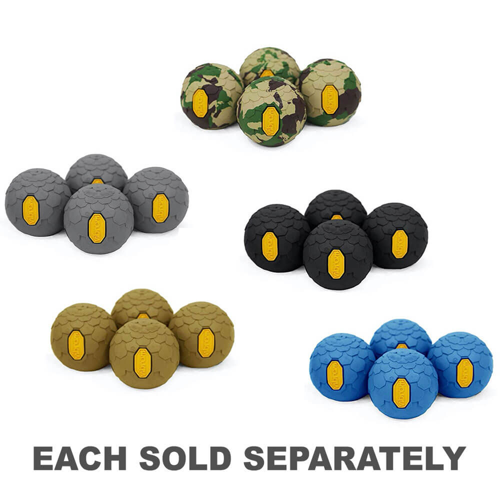 In Zusammenarbeit mit Vibram hat Helinox diese runden Gummifüße entwickelt, um Ihren Stuhl auf hartem Boden und rutschigen Oberflächen zu sichern. Die Vibram-Gummimischung ist klebrig, langlebig und hinterlässt keine Spuren auf Granit oder den Holzböden Ihres Zuhauses. Die runde Form sorgt für etwas mehr Oberfläche, um das Einsinken in weicheren Boden auszugleichen. Die 45-mm-Größe funktioniert mit den Chair Ones, Chair Two und Chair Zero von Helinox.
