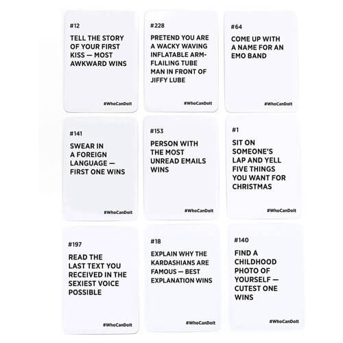 • 250 Aktionskarten, um deine Freunde herauszufordern, um zu sehen, WER ES SCHAFFT...